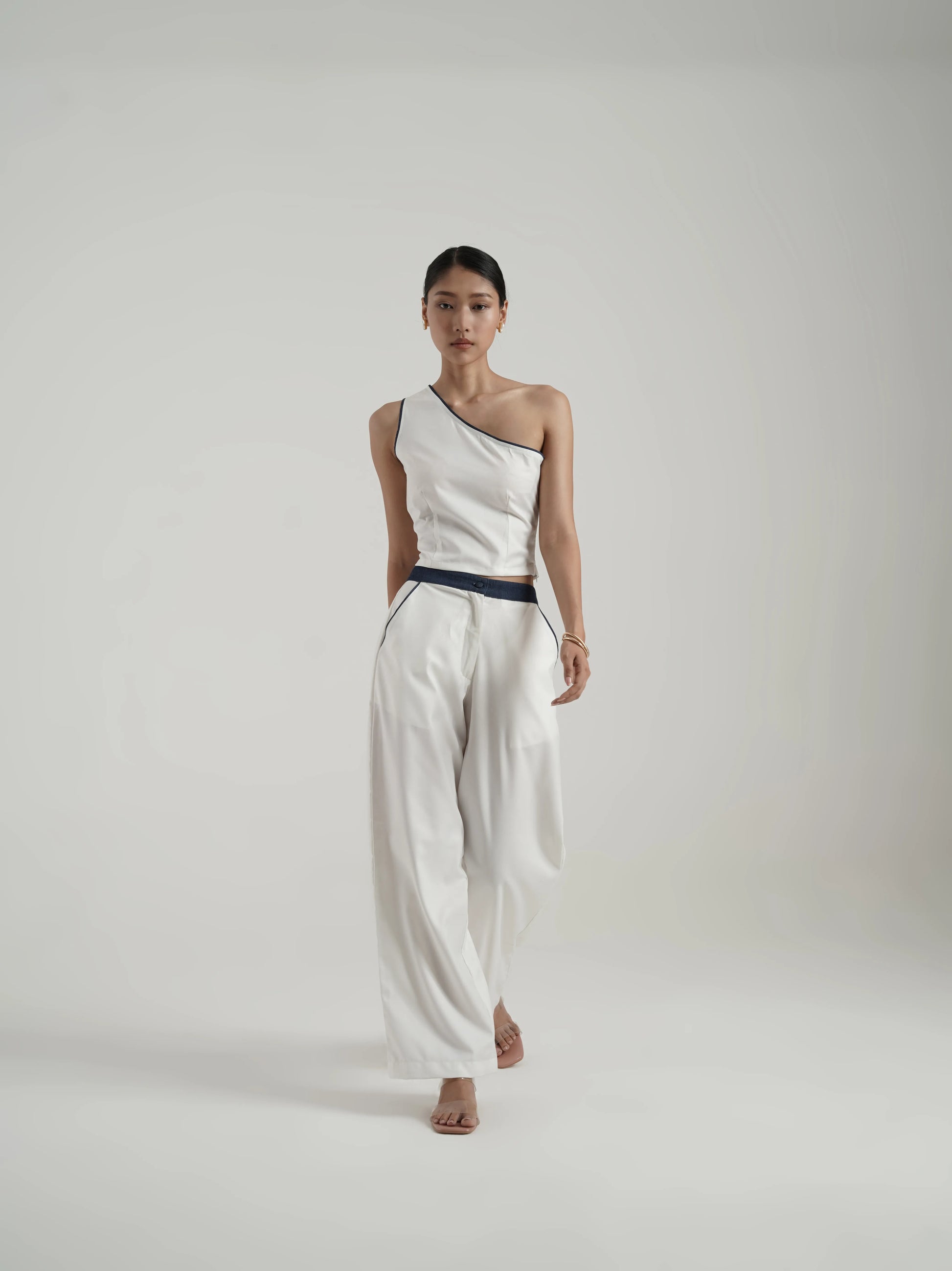 This set is effortlessly stylish. The minimal denim detailing adds a touch of sophistication, making it the perfect blend of comfort and class, seamlessly transitioning from day to night. Thoughtfully designed in a lustrous fabric, it offers all-day ease without compromising on elegance.